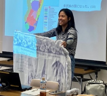 1月の講師は、スリランカ出身のデーヴィカーさん。スリランカでは、高校教師として日本語を教えておられます。スリランカの学校の様子や、先生の仕事着は女性の場合サリーであることなど教えていただきました。実際に見せてもらったサリーは5mと長く、それを自分で巻き付けて着るということにみなさん驚かれていました。