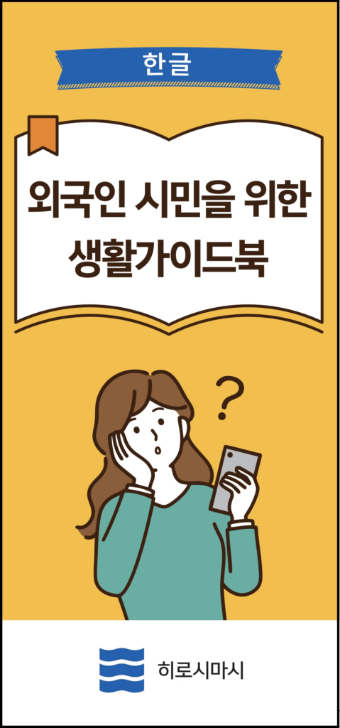 히로시마시는 매년 “외국인 시민을 위한 생활가이드북”을 제작하고 있습니다. 이 가이드북은 외국인을 위해 일상생활에 필요한 행정서비스와 생활 관련 정보를 8개 언어(일본어, 영어, 중국어, 한글, 포르투갈어, 스페인어, 베트남어, 필리핀어)로 작성한 책자입니다.