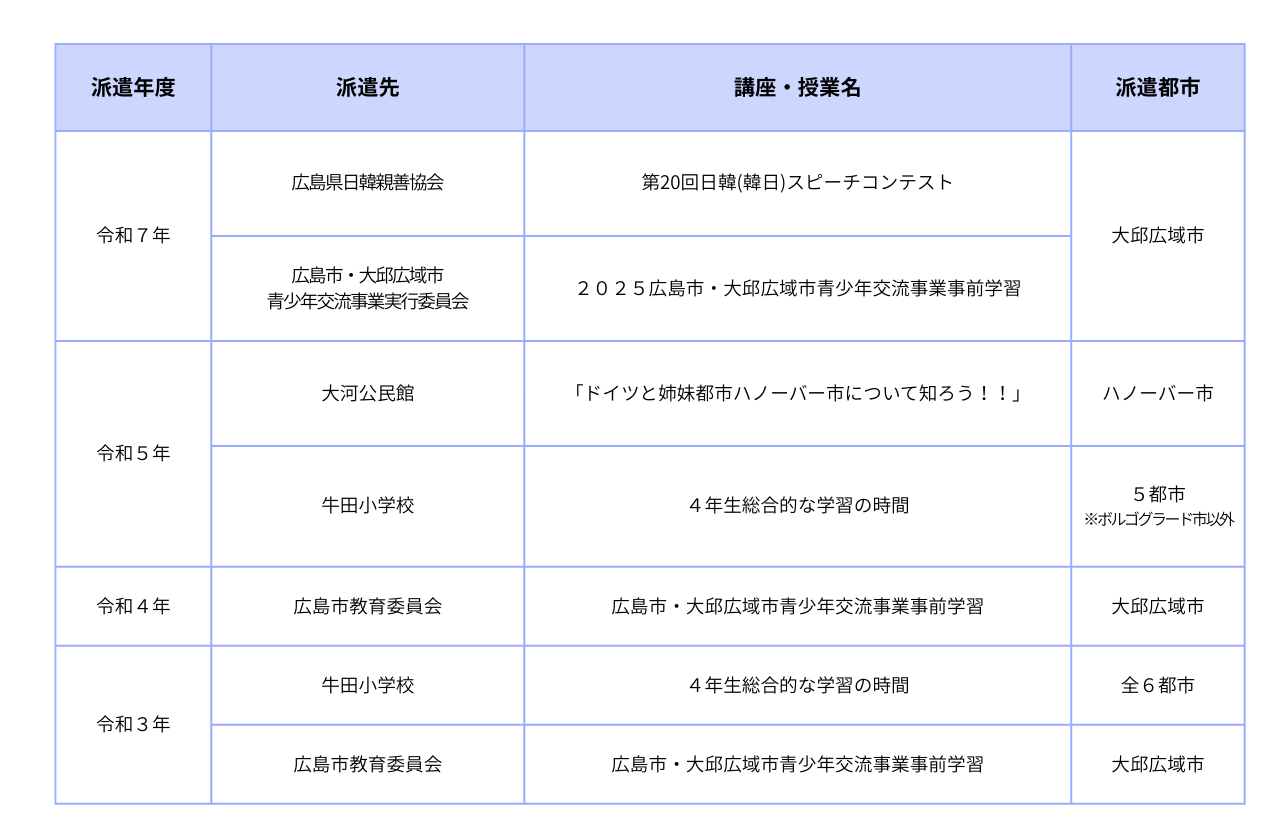 なお、現在、ボルゴグラード市担当のヒロシマ・メッセンジャーの派遣は行っておりませんので御了承ください。