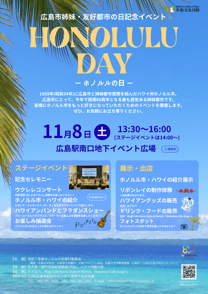 「ホノルルの日」記念イベントを開催します🌴(広島市姉妹・友好都市の日記念イベント)