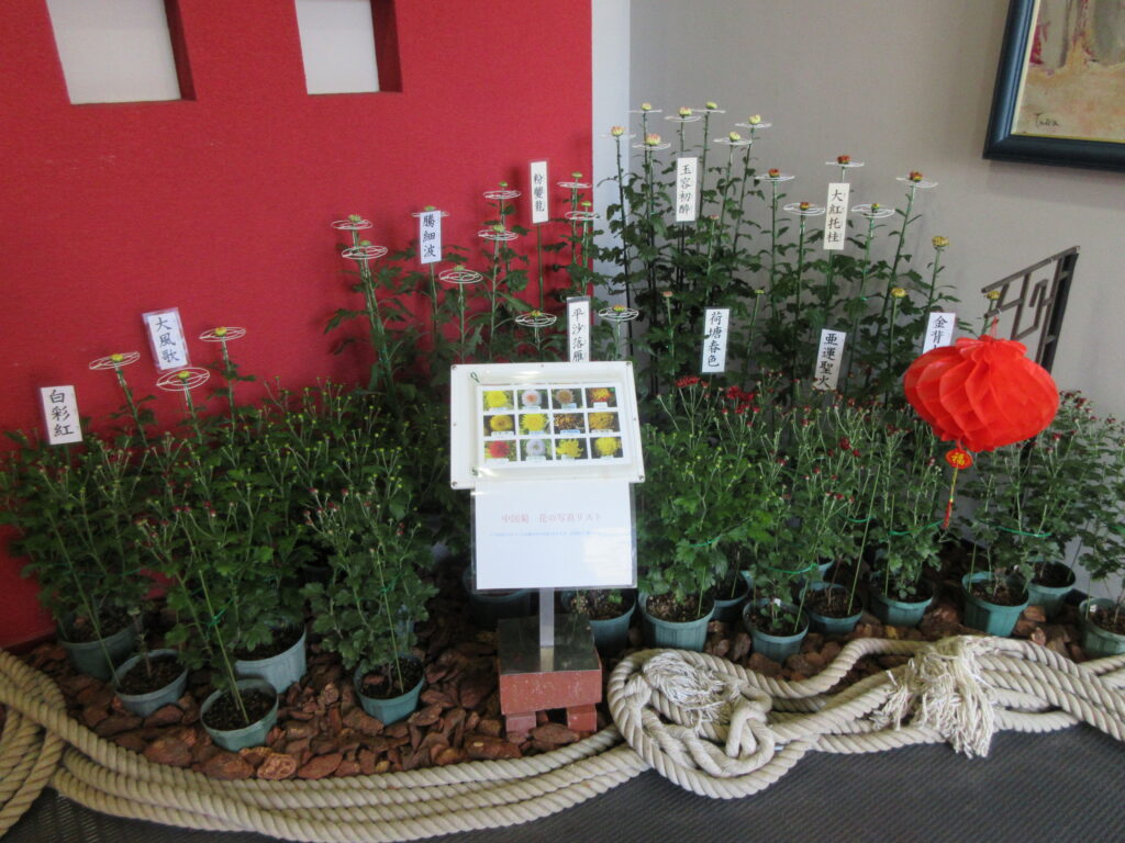 会場の入り口付近に、広島市植物公園のご協力のもと重慶市から贈られた菊の展示を行いました。昨年よりもさらに暑い猛暑が続いた今年は、つぼみがわすかに開き始めるにとどまり、開花した菊は見られませんでしたが、重慶市から贈られた様々な菊を通して重慶市とのつながりを感じることができました🌼