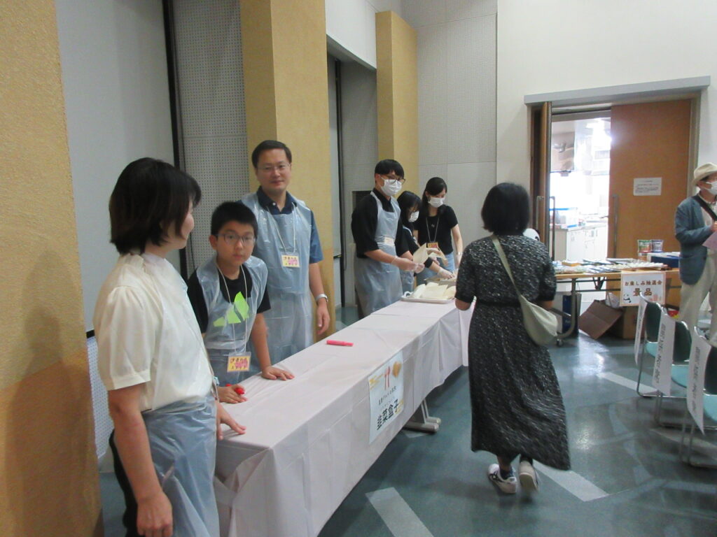 来場者に韭菜盒子を配布いただく留学生の皆さん 大好評だった中国の家庭料理「韭菜盒子」