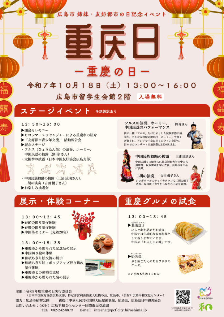 令和7年度広島市の姉妹・友好都市の日記念イベント「重慶の日」を開催しました!
