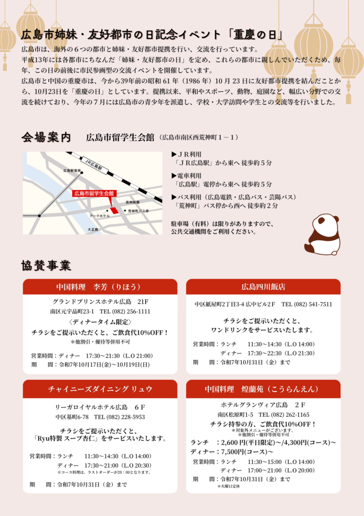 令和7年10月18日(土)、広島市留学生会館において「重慶の日」を開催しました。