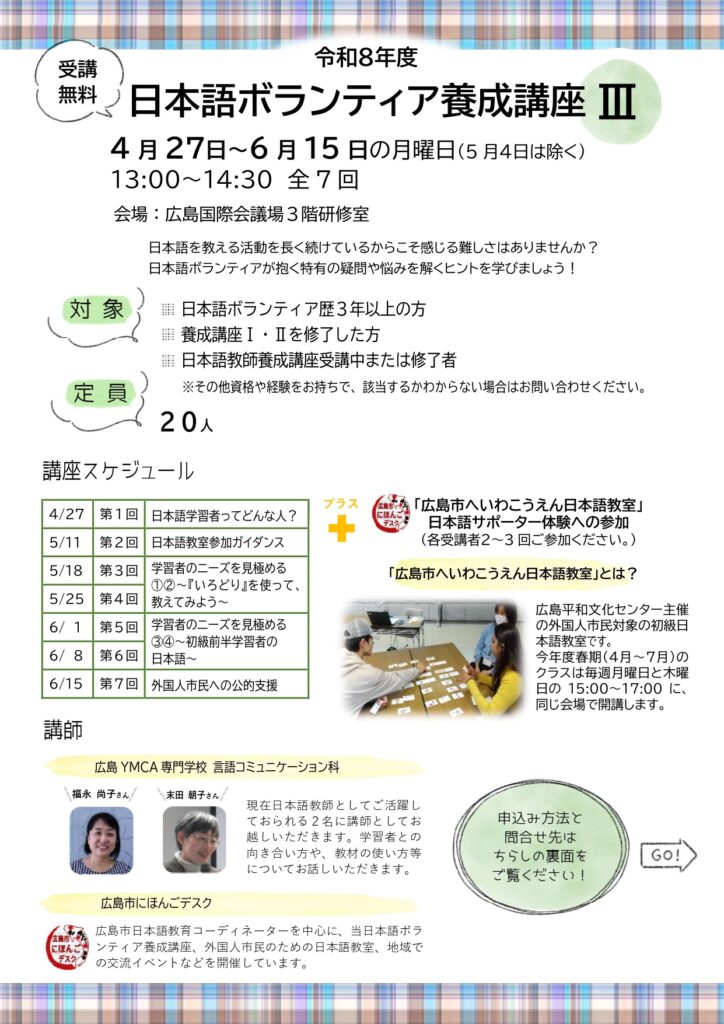 令和8年度日本語ボランティア養成講座Ⅲ 受講者を募集します