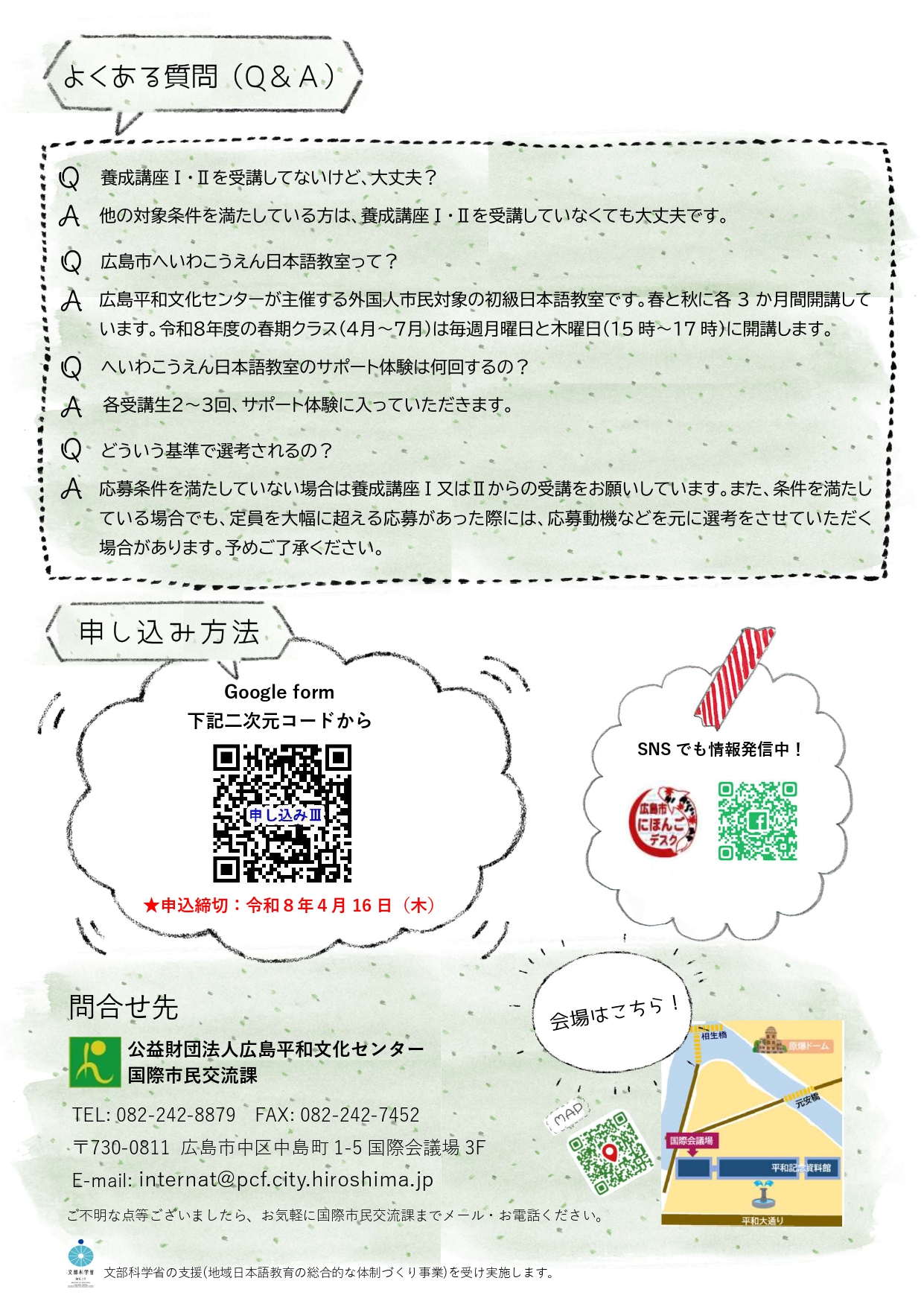 (公財)広島平和文化センター国際市民交流課 TEL:082-242-8879
