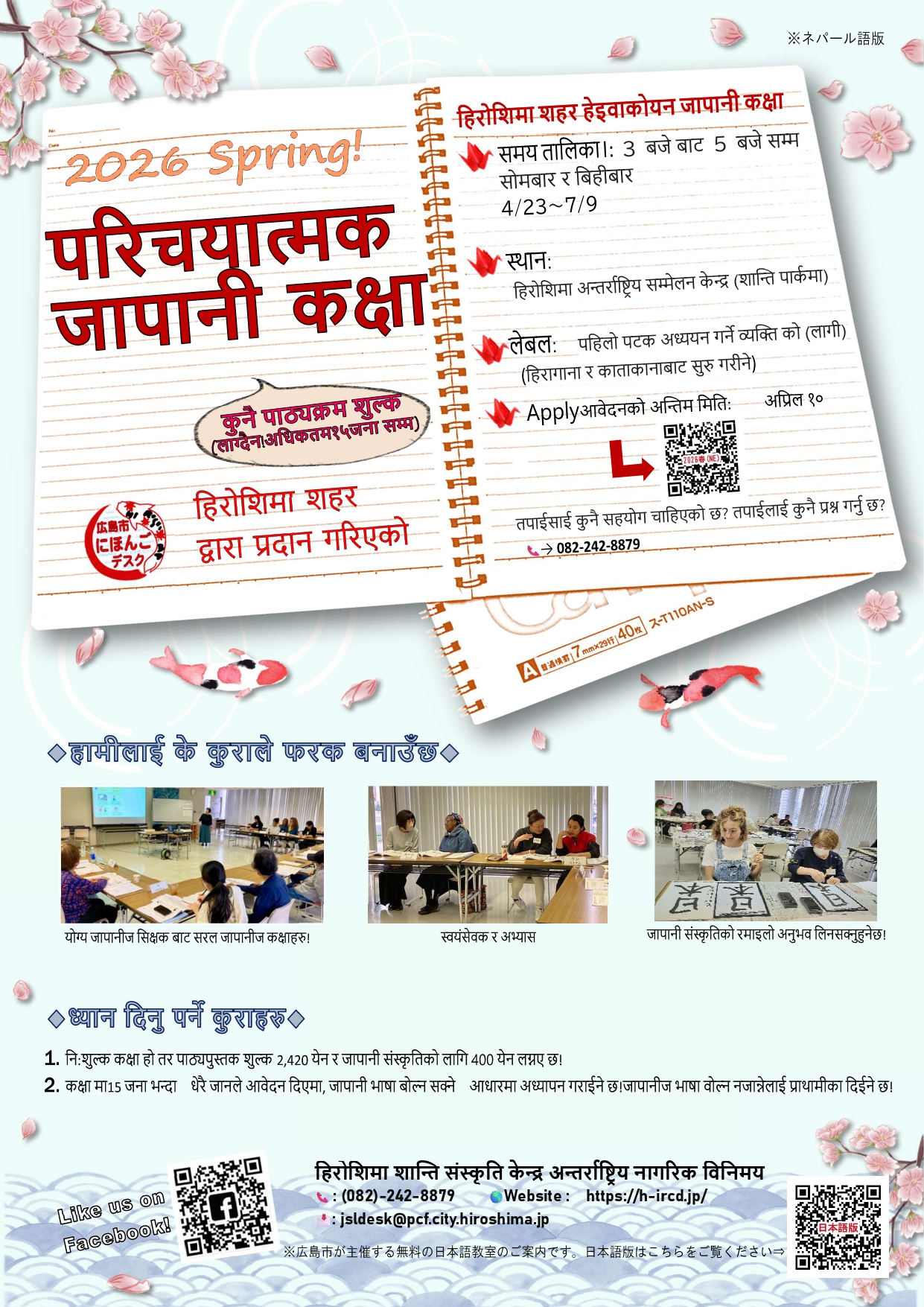 【नेपाली(ネパール語)】हिरोशिमाशहरहेइवाकोयनजापानीकक्षा